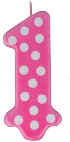 Oasis Supply Girl Polka Dot No. 1 Birthday Party Wax Candle For Cake Decorations, 3.25u201d Tall, Pink & White