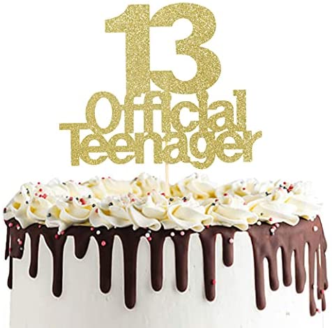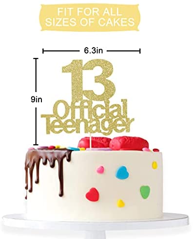 Official Teenager 13 Cake Topper – Birthday Theme Selection is a Toast to the 13-year-old Party Decorations, the Official Youth 13-year-old Cake Decoration, a Happy 13-year-old Birthday Cake Top Hat for Boys and Girls, a Teenageru2019s Birthday Party Supplies, Gold.