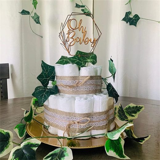 Oh Baby Cake Topper for Rural Baby Shower Decoration , Boys and Girls Gender Reveal Party , Wood