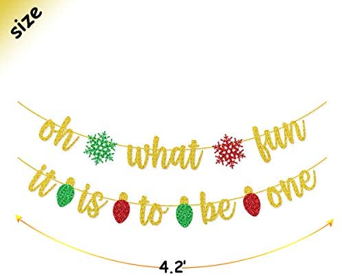 Oh What Fun It Is To Be One Banner Pre-strung for Christmas First 1st Birthday Party Supplies Decorations