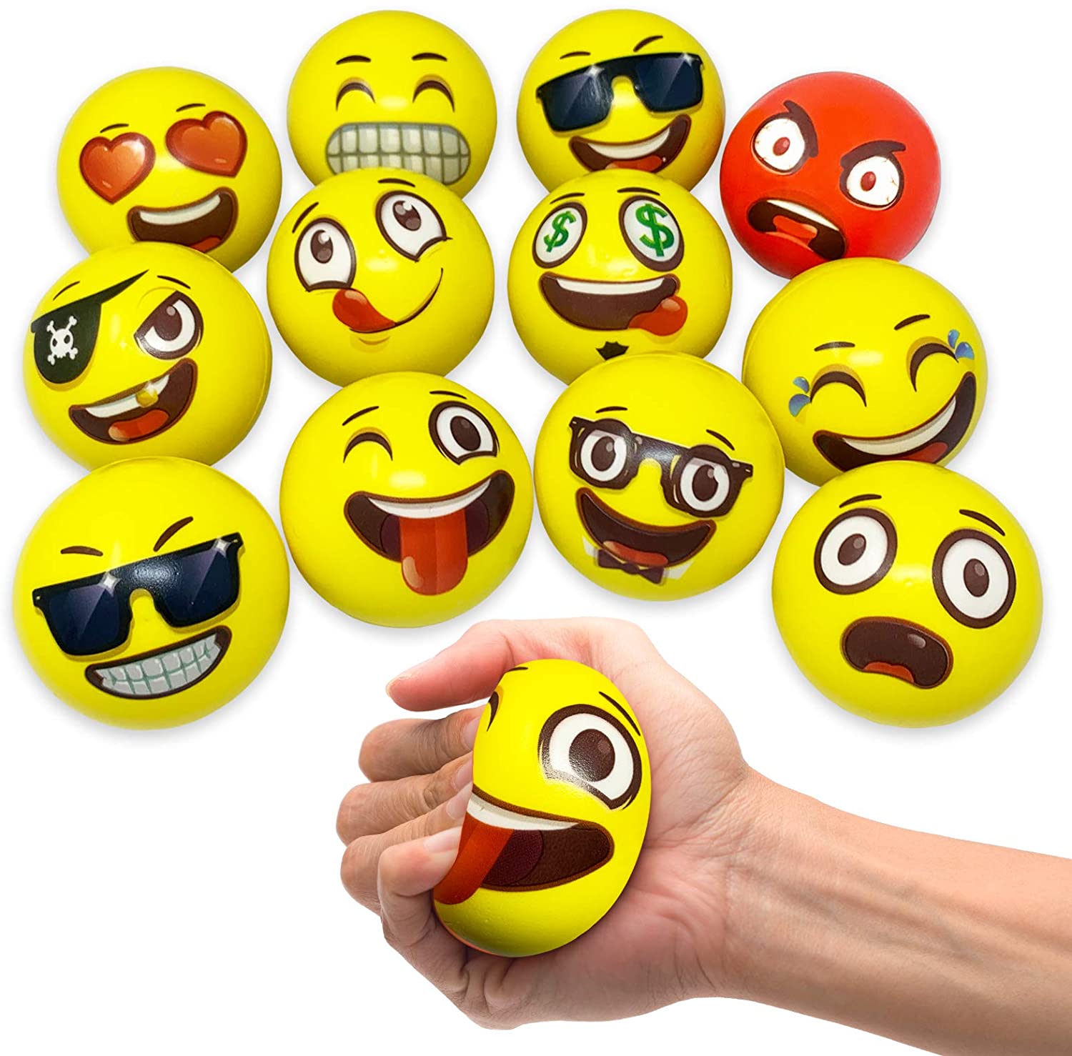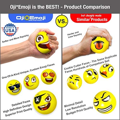 Oji-Moji Party Pack 12 Emoji Stress Balls, Stocking Stuffers for Kids,, Stress Relief, Fidget Kids Toys, Therapy Squeeze, Special Need, Anxiety, Motivation, ADHD, Autism, Team Building