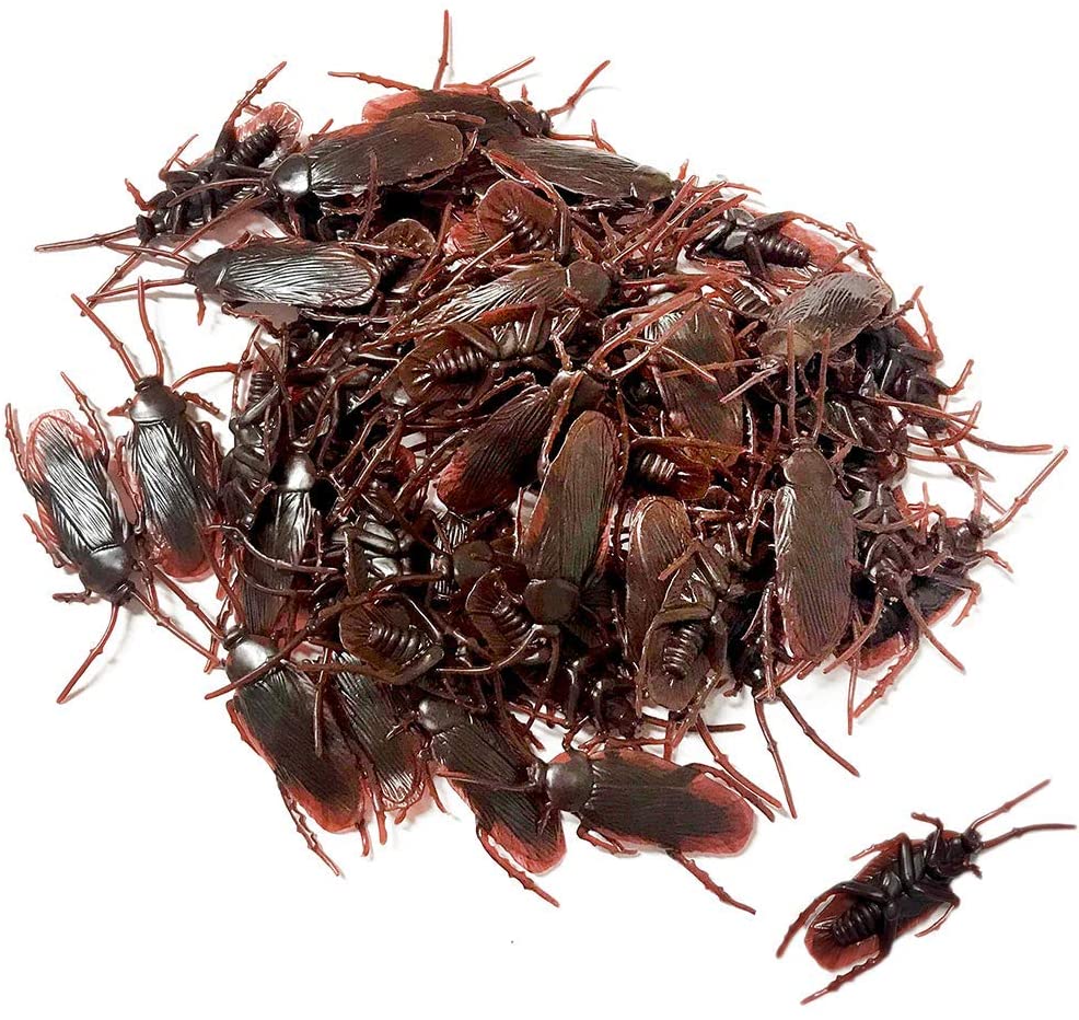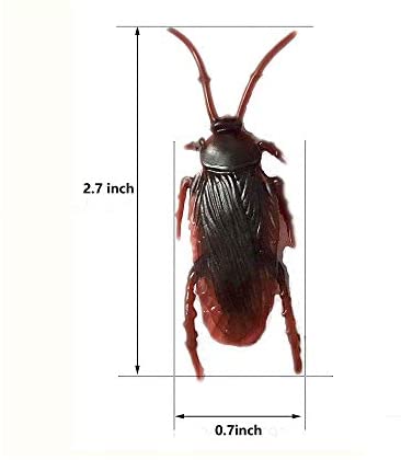 Quanitities: 100pcs life-like fake roaches design with fake antennas, legs and wings. meet your needs of prank with enough quantities. Size:7cm/2.7 inch in length. Material: Made of non-toxic PVC materials. Play a trick: Put the fake roaches in a friends drawer, bag, pocket, and next to his/her bowl when he/she was eating. Party favor: These realistic roaches are also Perfect for Halloween party, party decorations, stage props scatter them across the buffet table to shock the guests!