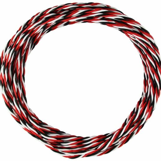 Feature:Color: Futaba color (B-R-W) Cable Length: 32 feet/volume Cable Type: 26AWG/ 26# Cores of Copper Wire: 30 cores Diameter of Copper Wire: 0.08mm Outer Diameter of Cable: 1.2mm Package List: 32 feet 26awg twisted servo cable in black/red/white