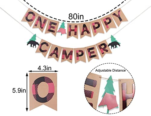 One Happy Camper Banner – Lumberjack First Birthday Decorations, Buffalo Plaid 1st Birthday Banner, Wild One Birthday Decorations, 1st Birthday Decorations for Boys