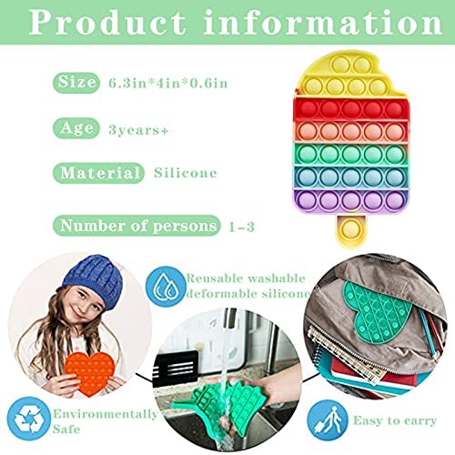 Feature: washable no noise reusable unique shape silicone material Package include: 1x Popsicle push pops bubble fidget sensory toy About Our Custo…