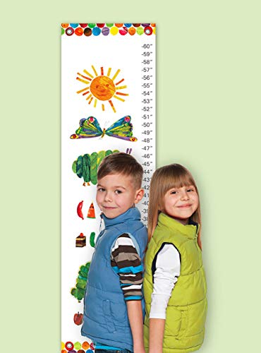 Your child will be delighted to recognize these vibrant insects created by Eric Carle. These iconic characters are featured in the book The Very Hungry Caterpillar and serves as a wonderful way to unite the joy of reading with your childs surroundings. The World of Eric Carle is beautifully reproduced in this giclee collection that features his most beloved characters.Our kids growth charts are created on the same artists canvas as our stretched wall art. Grommets placed in the four corners make them easy to hang. We provide color coordinated decorative covers that easily fit over the screw or nail you choose. This product creates a great childhood keepsake, and rolls up easily for safe storage. The growth chart can be wiped clean with a soft, dry or slightly damp cloth and should it wrinkle, the backside may be ironed on a low setting with light steam. A permanent marker (not included) is a great way to mark dates or ages on the chart.