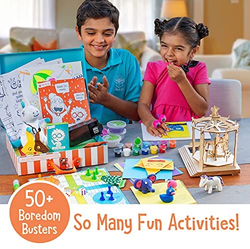 Open The Joy The Rainy Day Box, Activity Box Includes 3 Board Games, Coloring, Origami, Magic, Cards, Painting, a Wooden Construction DIY Project, Playing Cards, Jokes, Riddles And Much More – Ages 4+