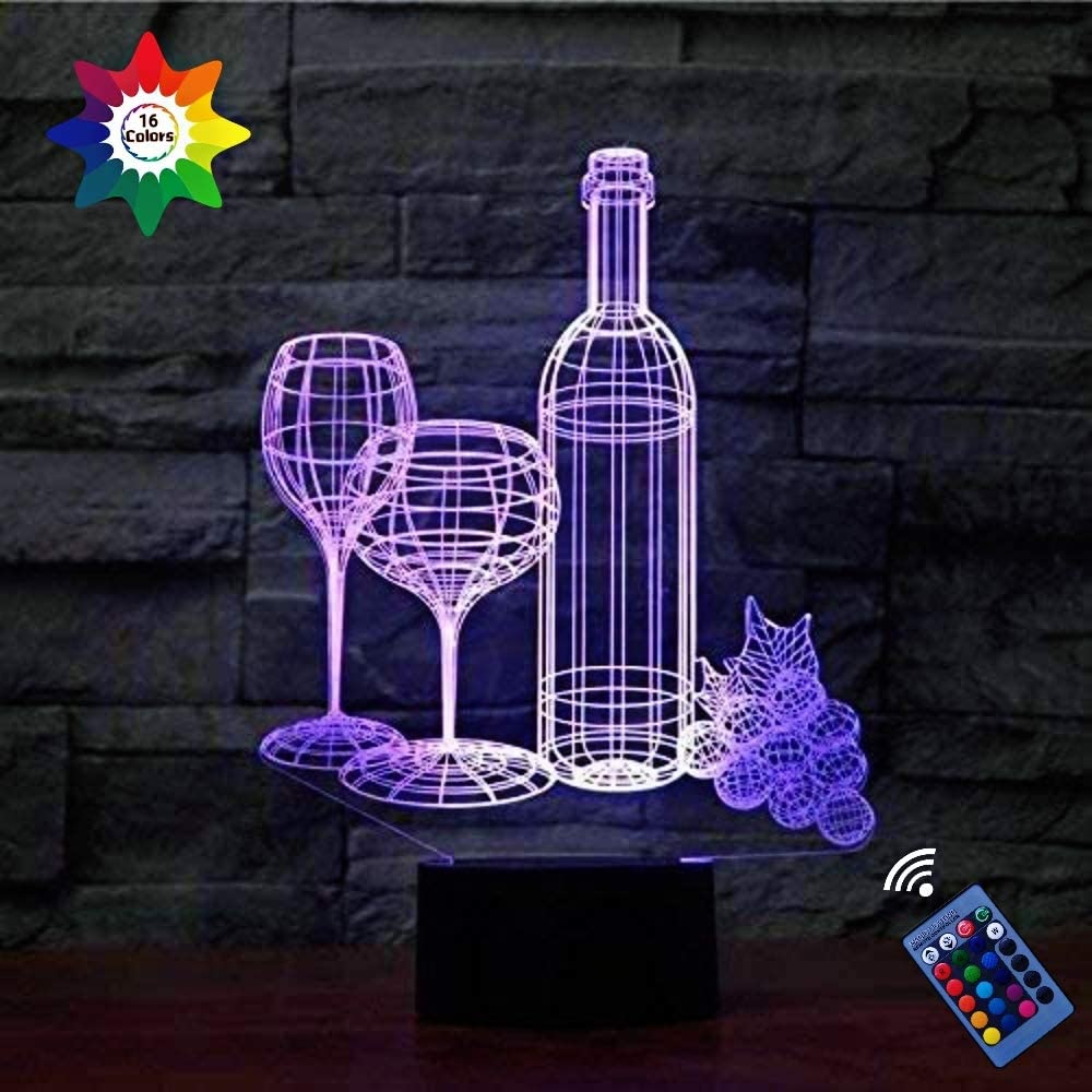 Optical Illusion 3D Red Wine Cup Night Light 16 Colors Changing USB Powered Remote Control Touch Switch Decor Lamp LED Table Desk Lamp Children Kids Christmas Xmas Brithday Gift