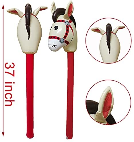 Oringaga 4 Packs Inflatable Stick Horses – Western Cowboy/Pony//Horse Themed Baby Shower Kids Birthday Party Decorations Supplies Favors Inflatable…