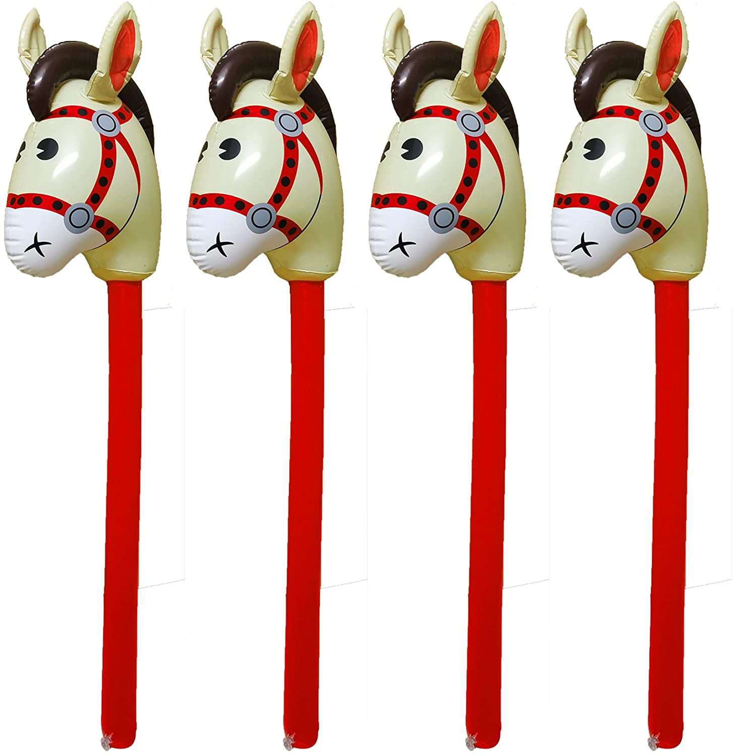 Oringaga 4 Packs Inflatable Stick Horses – Western Cowboy/Pony//Horse Themed Baby Shower Kids Birthday Party Decorations Supplies Favors Inflatable Costume Stick Horse