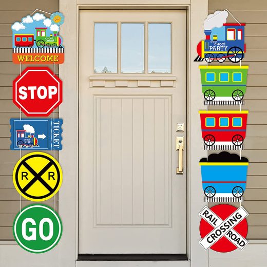 Railroad Train Themed Party Decorations – If you want to throw a railway themed party, a train themed party or just add a little interesting decoration to your home. Then this set of party decorations will surprise you. These fun and lovely railway patterned decorations are sure to create fun memories for you! Package Content – Comes with 10 pieces railway train crossing themed cutouts, 3 sheets of glue points and a roll of ribbon. These are enough to complete a porch or a room, and if you want any other kind of decoration, you can go to our home page and buy them. Easy to Install – These cardboard has two small holes at the top and bottom for easy rope passage. You can enjoy the DIY process and then you can hang it up as a banner/door sign/porch sign, stick it on the wall as a background or hold it in your hand as a photo prop. Premium Material – Made of high quality hard cardstock, adopting high-tech digital print which will ensure that the products are durable, non-fading, and easy to store for the next party. Wide Range of Applications: You can use it as a decoration on childs birthday party or a welcome banner on porch. In addition, you can also use it as a teaching tool to teach children to learn these signs and objects at home, school, and classroom.
