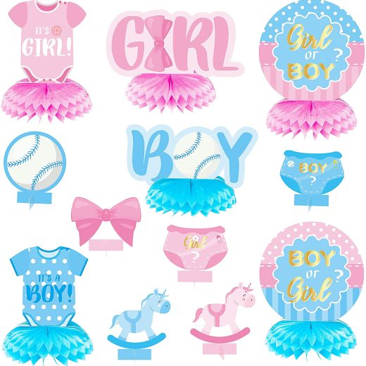 OSNIE 12 Pcs Baby Gender Reveal Honeycomb Centerpieces Table Toppers Blue and Pink Gender Reveal Party Decorations Supplies for Unisex He or She Boy or Girl Baby Shower Pregnancy Announcements Decor