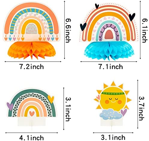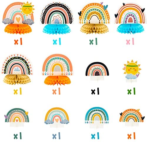 OSNIE 12Pcs Boho Rainbow Honeycomb Centerpieces Table Topper Package Including: 6 x Bohemia Rainbow Theme Honeycomb 6 x Bohemia Rainbow Theme Table Topper 1 x Glue Sticker Material: Paper After-Sales Service Support: Your happiness is important to us. We are very eager to make your shopping experience a pleasant one, so we always provide quality service to our customers. If you are not satisfied with any quality and quantity problems, please feel free to contact us, we will solve it for you ASAP.