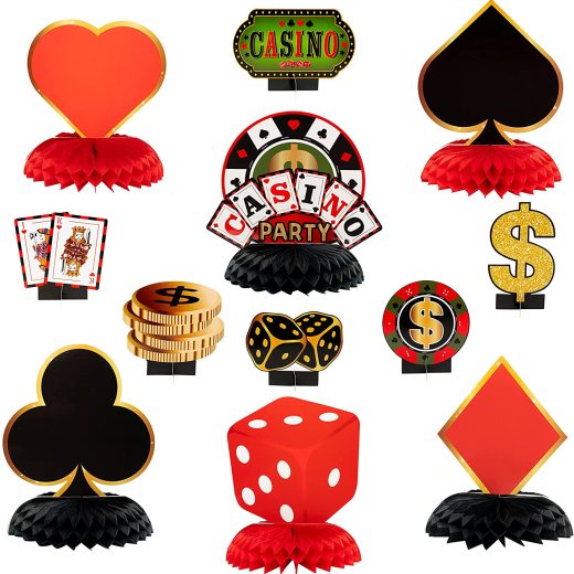 OSNIE 12Pcs Casino Theme Honeycomb Centerpieces Table Toppers Red and Black Poker Party Supplies Decoration Las Vegas Gambling Playing Card Table Decor Photo Prop for School Birthday Casino Game Night