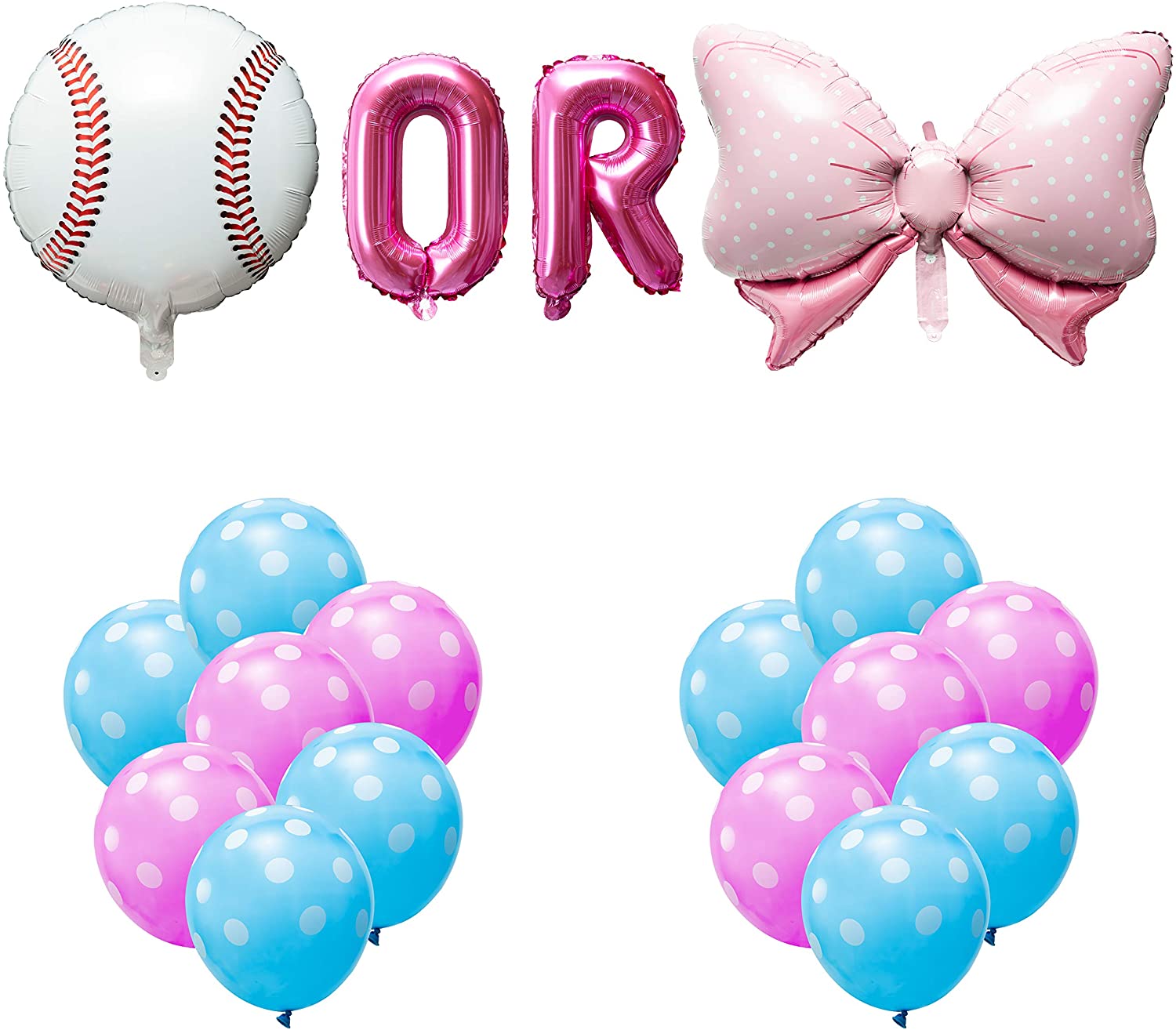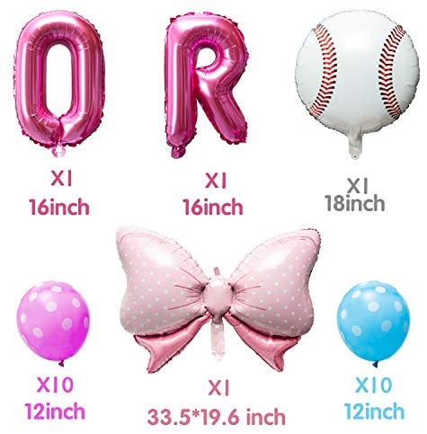 OSNIE Baseball or Bows Gender Reveal Balloons Party Decorations Supplies, Baby Blue and Pink Foil Mylar Latex Balloons Kit for Boy or Girl He or She Baby Shower Pregnancy Announcement Decor, Set of 24