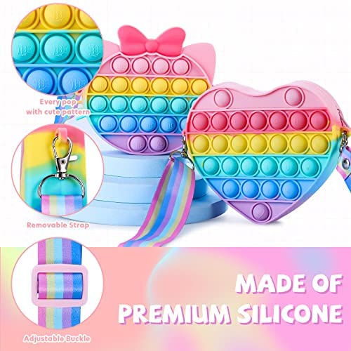 OUMEE 2 Pack Pop Purse Bag Fidget Toys for Girls, Rainbow Pop Fidgets Shoulder Bag Crossbody, Silicone Push Bubble Popper Backpack Christmas Party Pop Toy for Stress Relief (Cat&Heart)