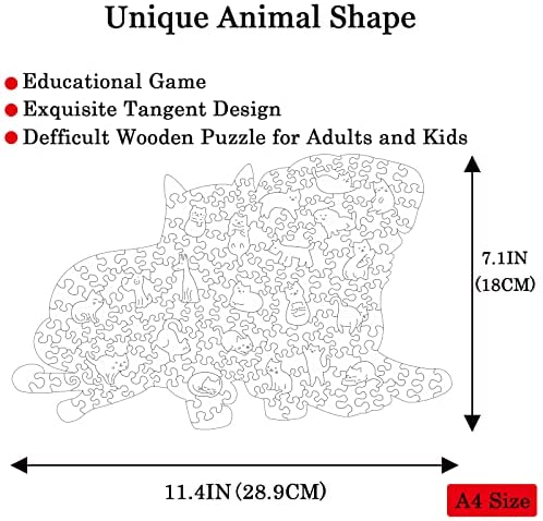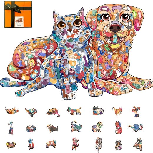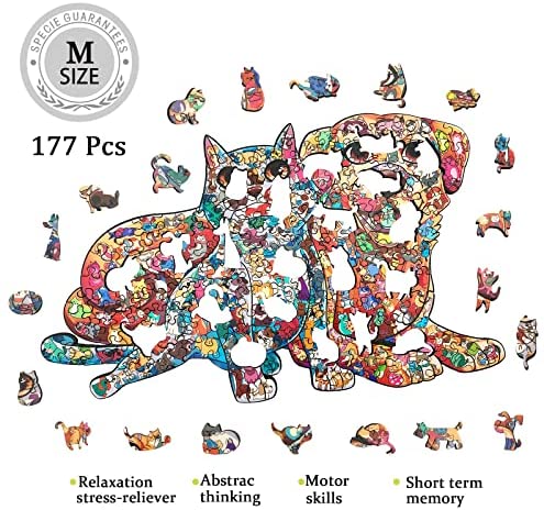 OURUOLA Wooden Jigsaw Puzzles for Adults Kids, Unique Cat and Dog Puzzle for Family Friends Fun Game 2021 Best Chrismats Toy Gifts 11.4× 7.1 in-177 pcs Medium