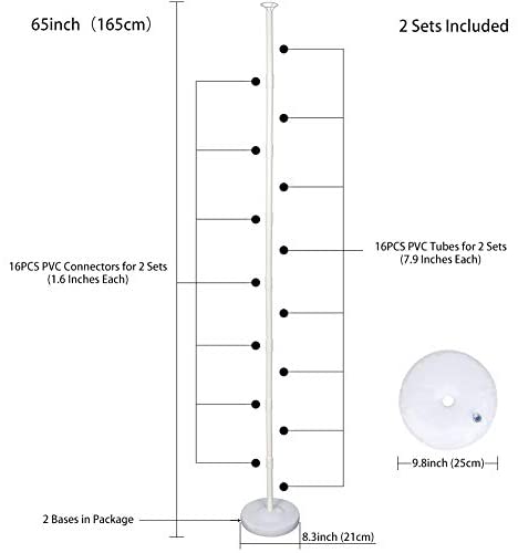 INCLUDED – 2 Set of balloons stand, 16 x PVC milky balloon sticks pipe, 16 x PVC connector, 2 x base, 2 x water bags, 36 x balloon clips, 2 x top balloon clip, 1x pipes, 1 x balloon fixing tape. Easy to assemble balloon Stand Kit and disassemble packing MATERIAL – The balloon column stand made of premium quality PVC, we use PVC milky tubes instead of ordinary transparent tubes. So our tubes are bigger, stronger, not deform and scratched easily and good for reusing SIZE – The PVC sticks measure 63in height, the bases are 8.3in diameter, PVC connector is 8in diameter. Multifunctional balloon holder, use your creativity to decorate your party with different balloons DESIGN – Our balloon tower stand kit will come with two extra high quality durable water bags which is able to fill 11lb water for each to add the weight on the base make the balloon column holder steadier. Convenient for your party decorations OCCASIONS – Our balloon column base and pole can be decorated to suit any event or party. Such as wedding, birthday, baby shower, anniversary, graduation, holiday, the company opened, celebrations, dance, family dinner, and other best decorations
