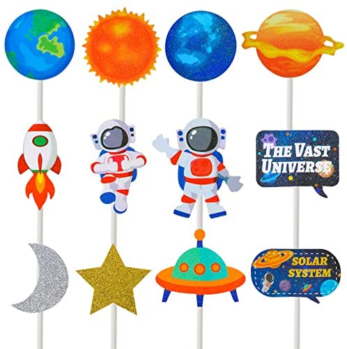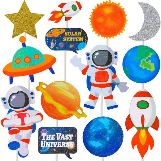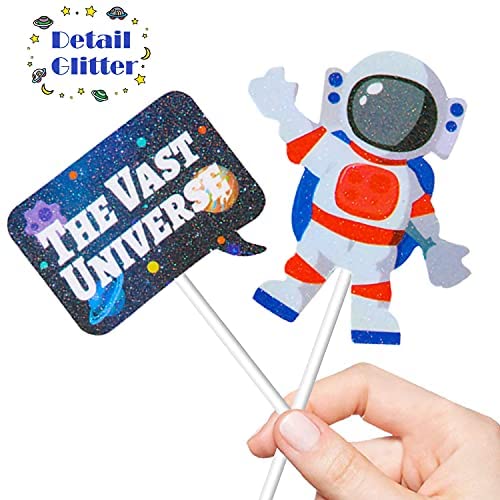 Outer Space Party Decoration, Astronaut Rocket Glitter Cupcake Toppers for Space Theme Birthday Party Baby Shower Supplies 24Pcs