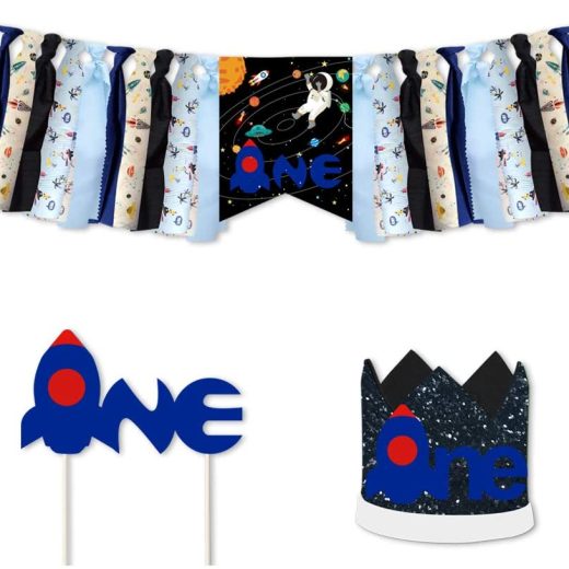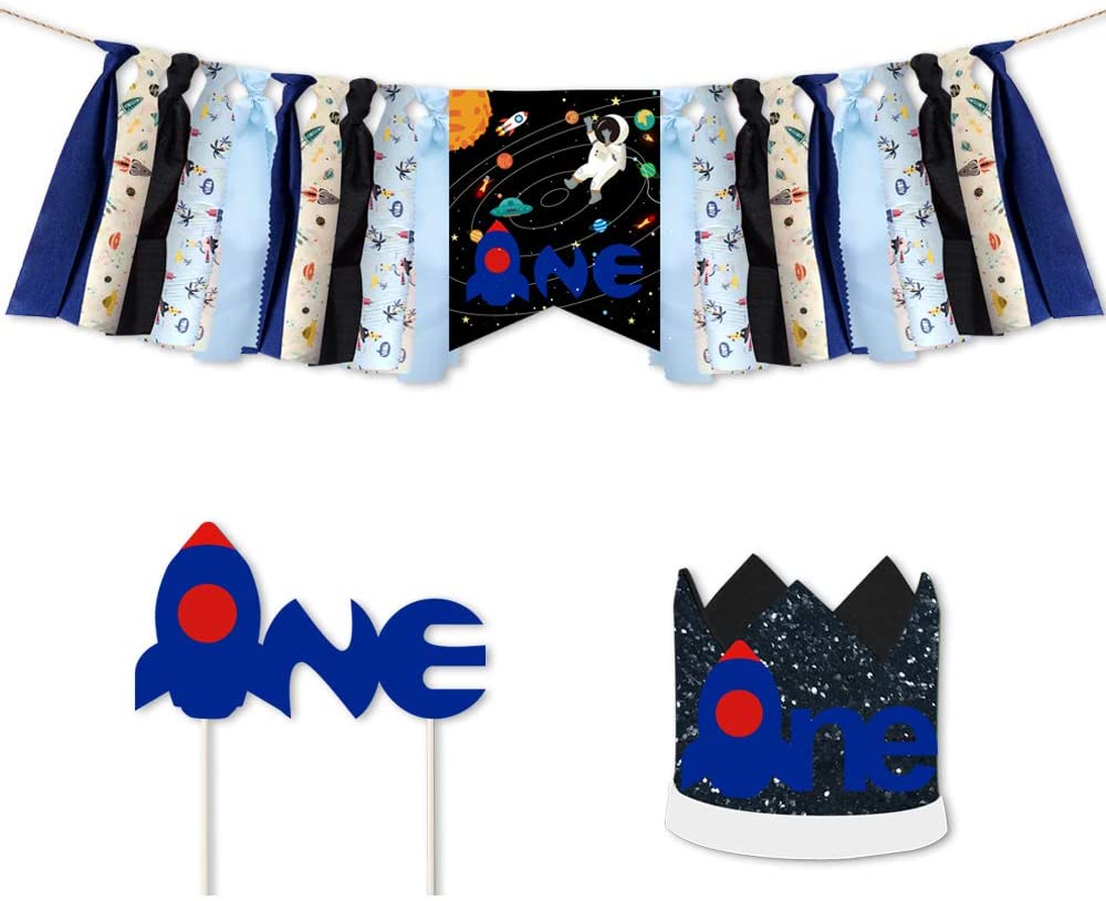 Outer Space Spaceship Theme 3 in 1 Birthday Party Supplies, Outer Space Astronaut First Birthday Decorations Kit