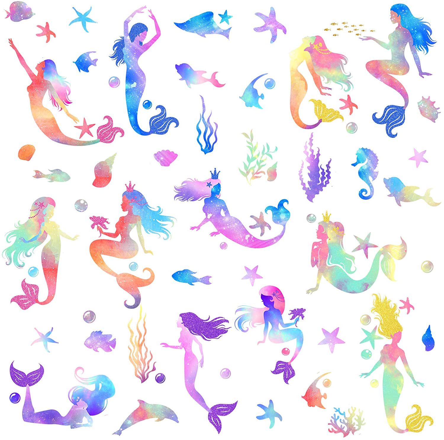 Theme Watercolor,Mermaid Surface Recommendation Wall Outus Color Colorful Room Type Bedroom, Classroom, Nursery, Game Room Material Vinyl, Plastic Installation Type Self-Adhesive Unit Count 1.00 Count