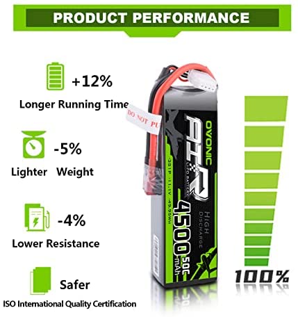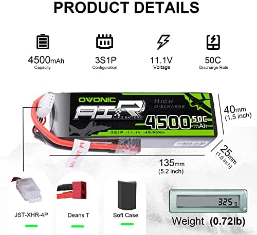 Specification – Ovonic 4500mAh 11.1V Lipo Battery Dimension(±3mm): 135*40*25mm /5.26*1.56*0.97inch(L*W*H), Approx Weight(±5g): 325g /0.71lb
