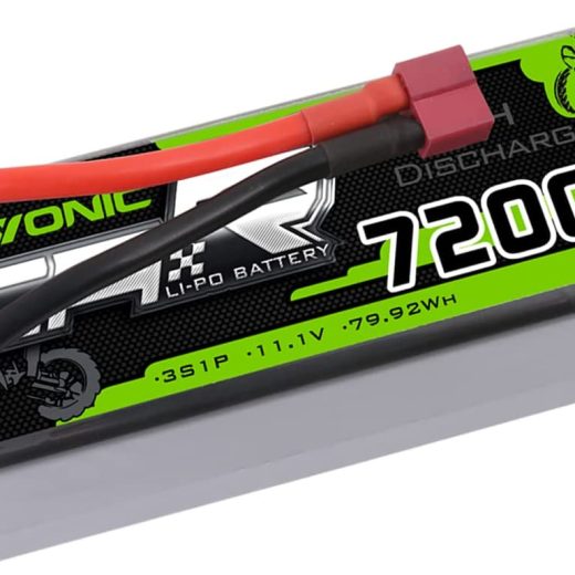 Parameter – Material: Lithium polymer, Voltage: 11.1V, Cell: 3S, Capacity: 7200mAh, Discharge: 80C, Charging plug: JST-XHR-4P, Discharging plug: Deans-T, Pack: Hard case