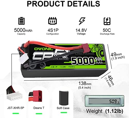 Specification – Ovonic 5000mAh 14.8V Lipo Battery Dimension(±3mm): 139*49*47mm /5.47*1.93*1.85inch(L*W*H), Approx Weight(±5g):508g /1.12lb