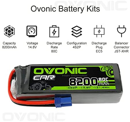 Parameter – Material: Lithium polymer, Voltage: 14.8V, Cell: 4S, Capacity: 8200mAh, Discharge: 80C, Charging plug: JST-XHR-5P, Discharging plug: EC5, Pack: Soft case