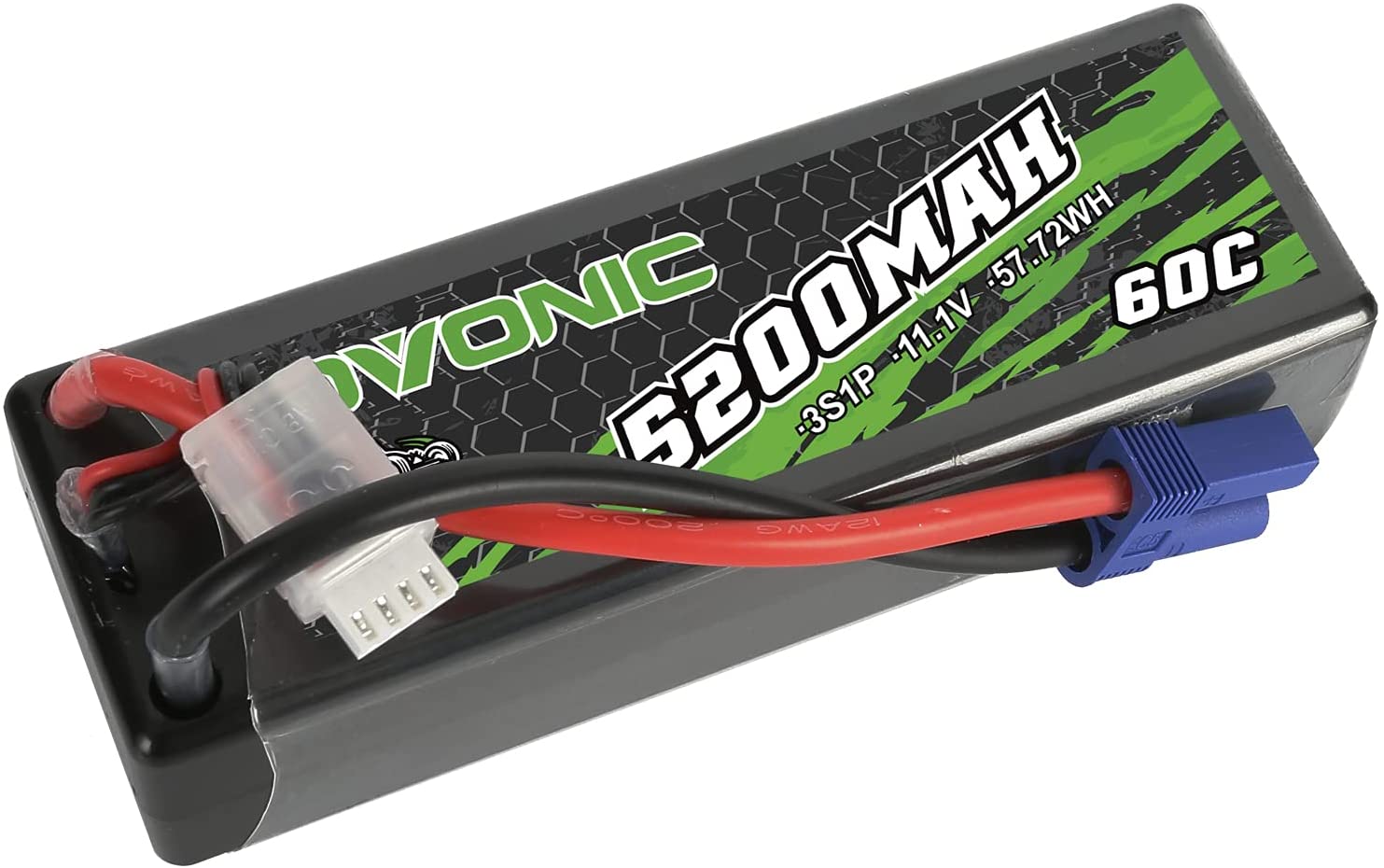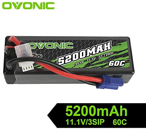 Specification- Material: Lithium polymer;Battery voltage: 11.1V ;Cell: 3S; Cell voltage: 3.7~4.2V; Capacity: 5200mAh; Discharge: 60C;Plug: EC5 Connector