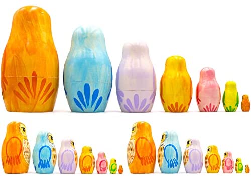 EXCELLENT DESIGN: handmade and hand painted educational owl toys for kids and unique home decor ONLY ECO-FRIENDLY MATERIALS: natural wood, hand painted water-based paints, finished with varnish UNIQUE GIFT FOR EVERYONE: russian dolls are great home decoration and educational toy for kids PERFECT DIMENSIONS: largest doll is 5.3, smallest is 0.8. Set of matryoshka dolls includes 7 pcs AEVVV is proud of high-quality russian matrioskas, if you arent satisfied well refund the purchase