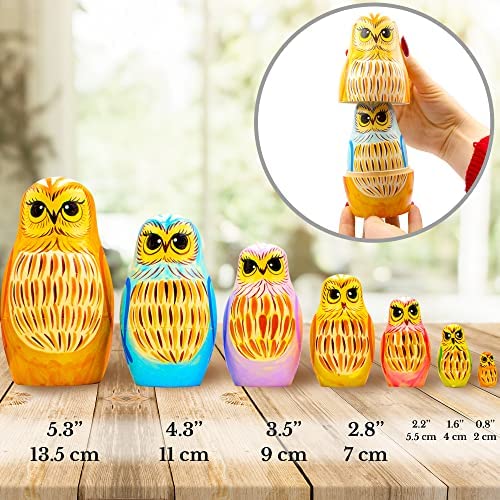 Owl Nesting Dolls Set of 7 pcs – Owl Decor – Owl Figurines – Owl Gifts for Owl Lovers – Wooden Owl Toy – Owl Decorations for Home – Handmade Owl Stuff