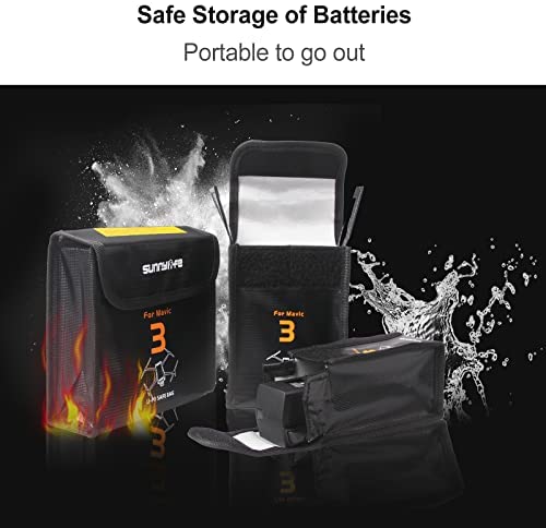 ?Battery Explosion-Proof Bag?- It is an essential accessory for the DJI Mavic 3 drone battery. During charging, transportation and storage, effectively protects the lipo battery. It has the characteristics of fire, explosion, radiation, scratch resistance, and heat resistance. ?Flame Retardant Material?- The lipo battery safe bag is made of highly explosion-proof, radiation-proof and fire-proof materials, and stores your batteries separately to maximize safety. It can also reduce the risk of fire caused by spontaneous combustion when the battery is charging (Do not leave the rechargeable battery unattended! Always make sure that the battery is on a non-flammable surface, and the flip cover is sealed when charging.) ?Velcro Seal Design?- The battery safety storage bag adopts a Velcro seal design, which can reduce the flow of airflow and oxygen, and help to stifle the flame before accidental fire occurs when charging the battery. It is convenient and quick to use. ?Safe Storage?- The size of each battery flame retardant bag is 140*64*50mm, only 40g, and it can hold a Mavic 3 battery without taking up extra space. You can store your battery separately to prevent the batteries from rubbing against each other during use, safely store the battery, and travel easily. ?Packing List?- Mavic 3 Small battery bag ×3 (Note: only battery bag is sold, mavic 3 battery is not included)