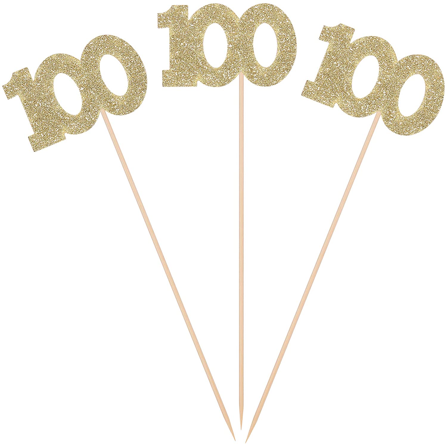 Pack of 10 Gold Glitter 100th Days Centerpiece Sticks Number 100 Table Topper Pary Decorations