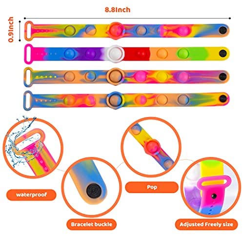 Silicone Bubble Toys Can Relieve Anxiety,Relax The Mood,Reduce Stress,Make People Concentrate,Release Stress,And Make People Feel Happy. Can Be Adjusted Freely In Levels, The Smallest Dimension Is 2.2In Diameter, And The Largest Dimension Is 2.5In Diamete,Made Of High-Quality Silica Gel,The Whole Is Smooth,With Silica Gel Bubbles Installed,Bpa-Free,Food-Grade Silica Gel,Safe And Non-Toxic,Safe To Use. It Is Suitable For Children With Autism And AdhdIt Is Suitable For Children With Autism And Adhd, Adults,Students,Office Workers,Etc. It Is Convenient To Carry And Relieve Anxiety,Adults,Students,Office Workers, Etc. Boys And Girls Will just love These Popular And Trendy Fidget Bracelet Toys. Multi-Color Integrated Design,Light And Comfortable,Can Be Carried Around,Easy To Clean,Beautiful And Fashionable Appearance,Dirt-Resistant,And Play-Resistant. We Guarantee 100% After-Sales Service.If You Have Any Comments And Suggestions On Our Products,Please Feel Free To Contact Us, Thank You.