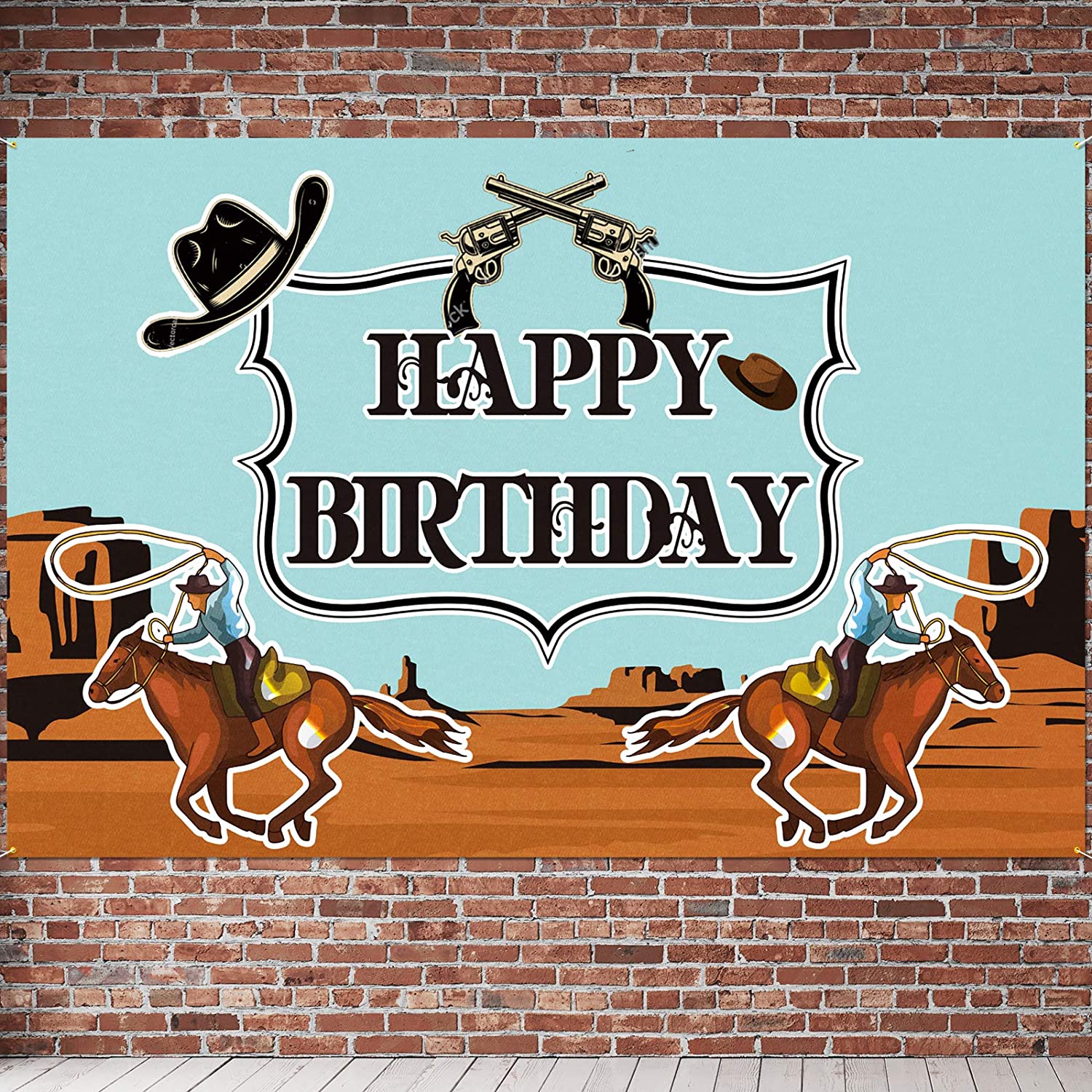 PAKBOOM Cowboy Happy Birthday Backdrop Banner – Western West Theme Birthday Party Decorations Photo Booth Supplies – 3.9 x 5.9ft