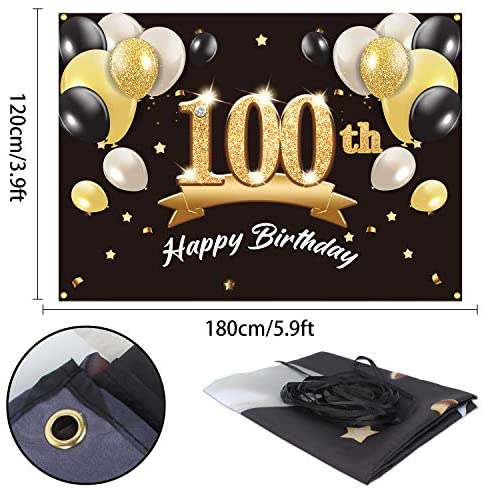 PAKBOOM Happy 100th Birthday Banner Backdrop – 100 Birthday Party Decorations Supplies for Men – Black Gold 4 x 6ft