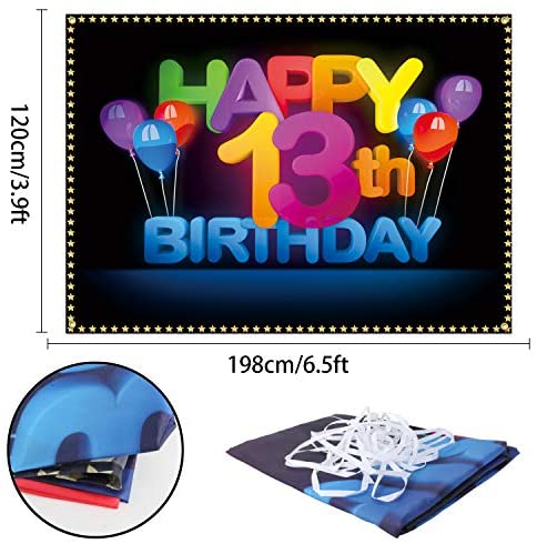 PAKBOOM Happy 13th Birthday Colorful Backdrop Photo Background Banner 13 Years Old Birthday Decorations Party Supplies for Boys Girls