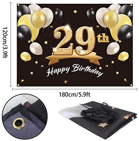 PAKBOOM Happy 29th Birthday Banner Backdrop – 29 Birthday Party Decorations Supplies for Men – Black Gold 4 x 6ft