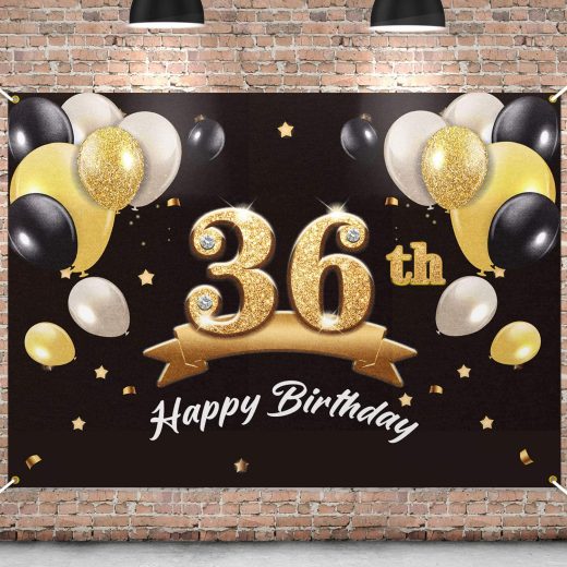 PAKBOOM Happy 36th Birthday Banner Backdrop – 36 Birthday Party Decorations Supplies for Men – Black Gold 4 x 6ft