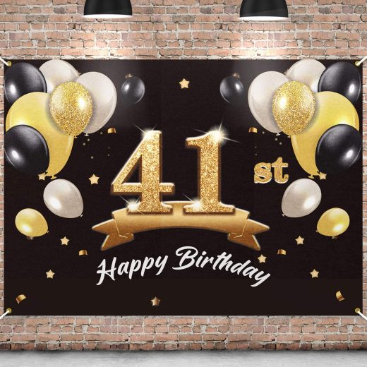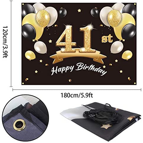 PAKBOOM Happy 41st Birthday Banner Backdrop – 41 Birthday Party Decorations Supplies for Men – Black Gold 4 x 6ft