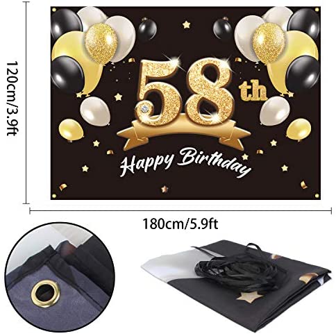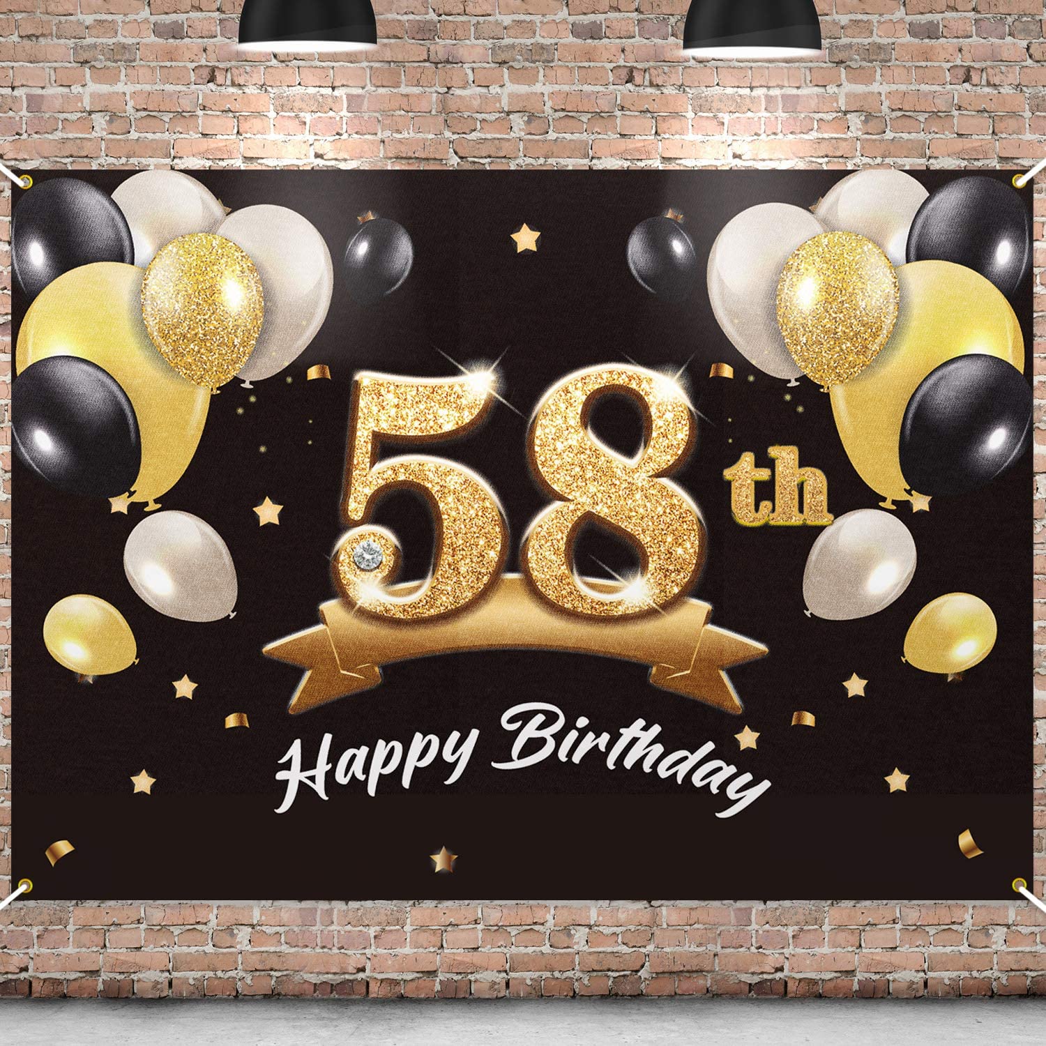 PAKBOOM Happy 58th Birthday Banner Backdrop – 58 Birthday Party Decorations Supplies for Men – Black Gold 4 x 6ft