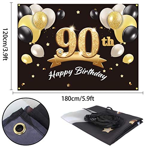 PAKBOOM Happy 90th Birthday Banner Backdrop – 90 Birthday Party Decorations Supplies for Men – Black Gold 4 x 6ft
