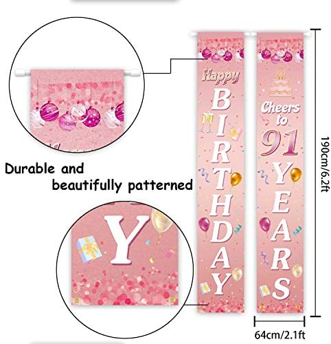 PAKBOOM Happy Birthday Cheers to 91 Years Pink Yard Sign Door Banner 91st Birthday Decorations Party Supplies