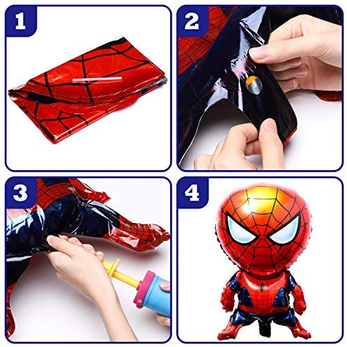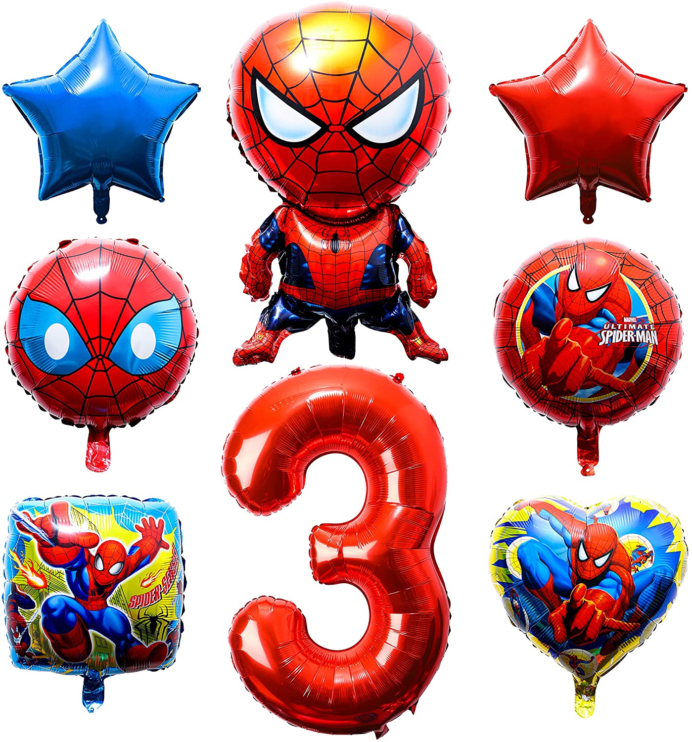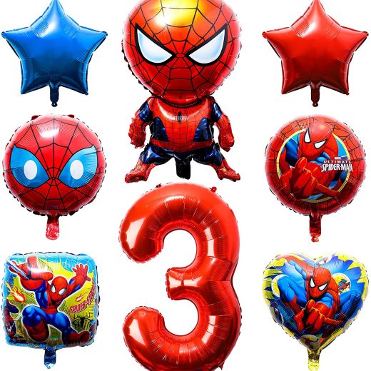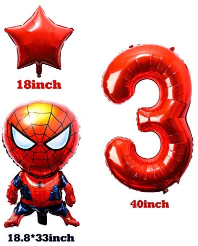 PANTIDE 8Pcs Spider Superhero Balloons 3rd Birthday – Including Giant Number 3 Balloon, Foil Balloons, Superhero Theme Birthday Party Decorations Supplies for Baby Kids Boys Who Likes Spider Hero