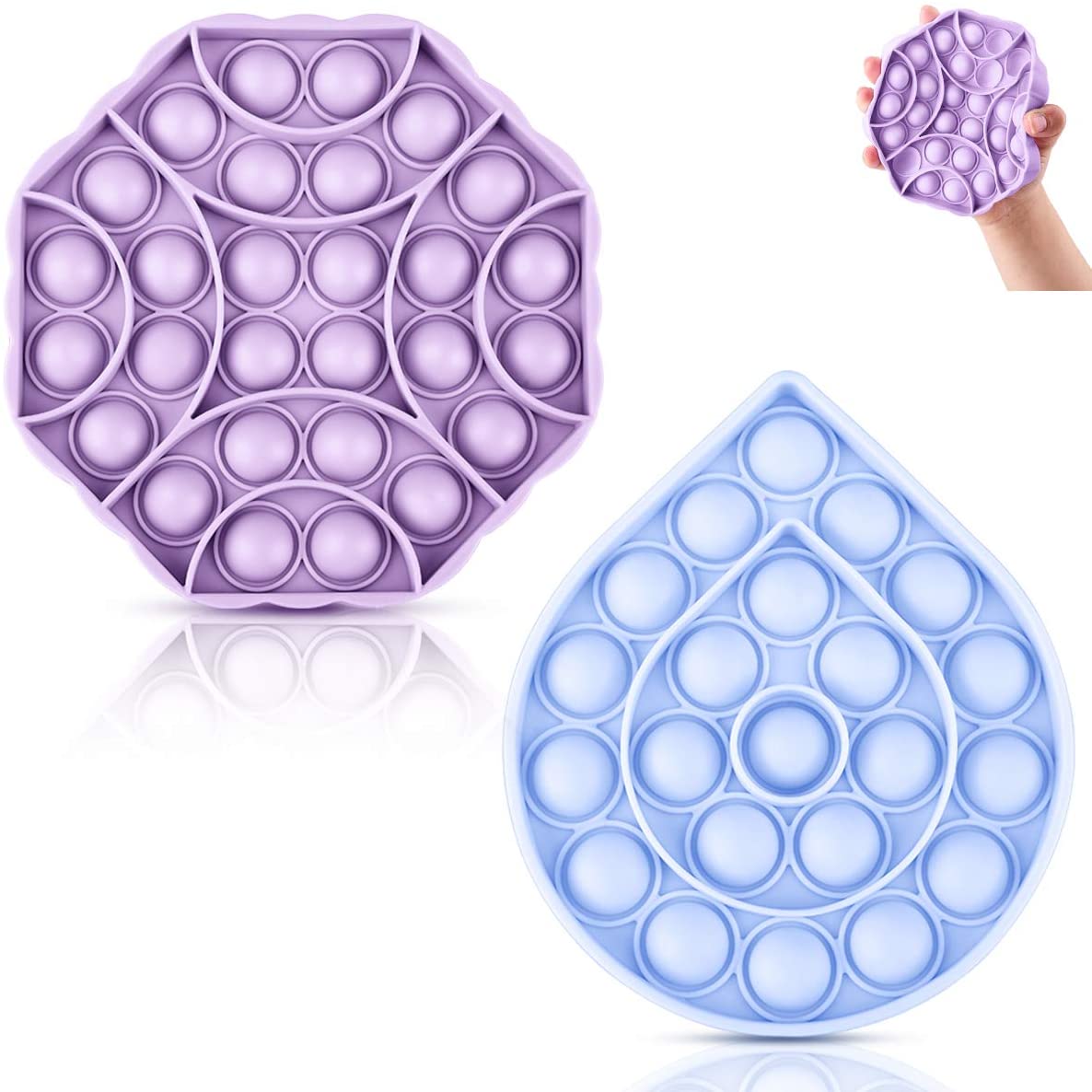 PAPERKIDDO 2 PCS Fidget Toys,Pop Bubble Fidget Sensory Stress Toy,Fidgets Push Toy for Kids,Silicone Stress Toys for Kids with ADD,ADHD or Autism (Octagon,Water Droplets)
