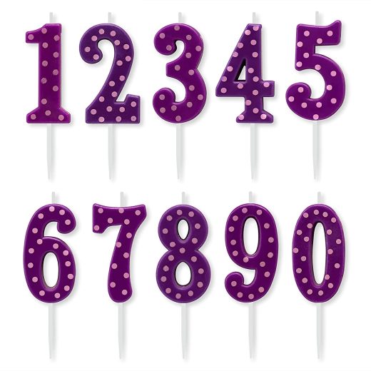 Papyrus Premium Number Birthday Candles Pack, Purple Polka Dots (Numbers 0-9, 10 Pieces)