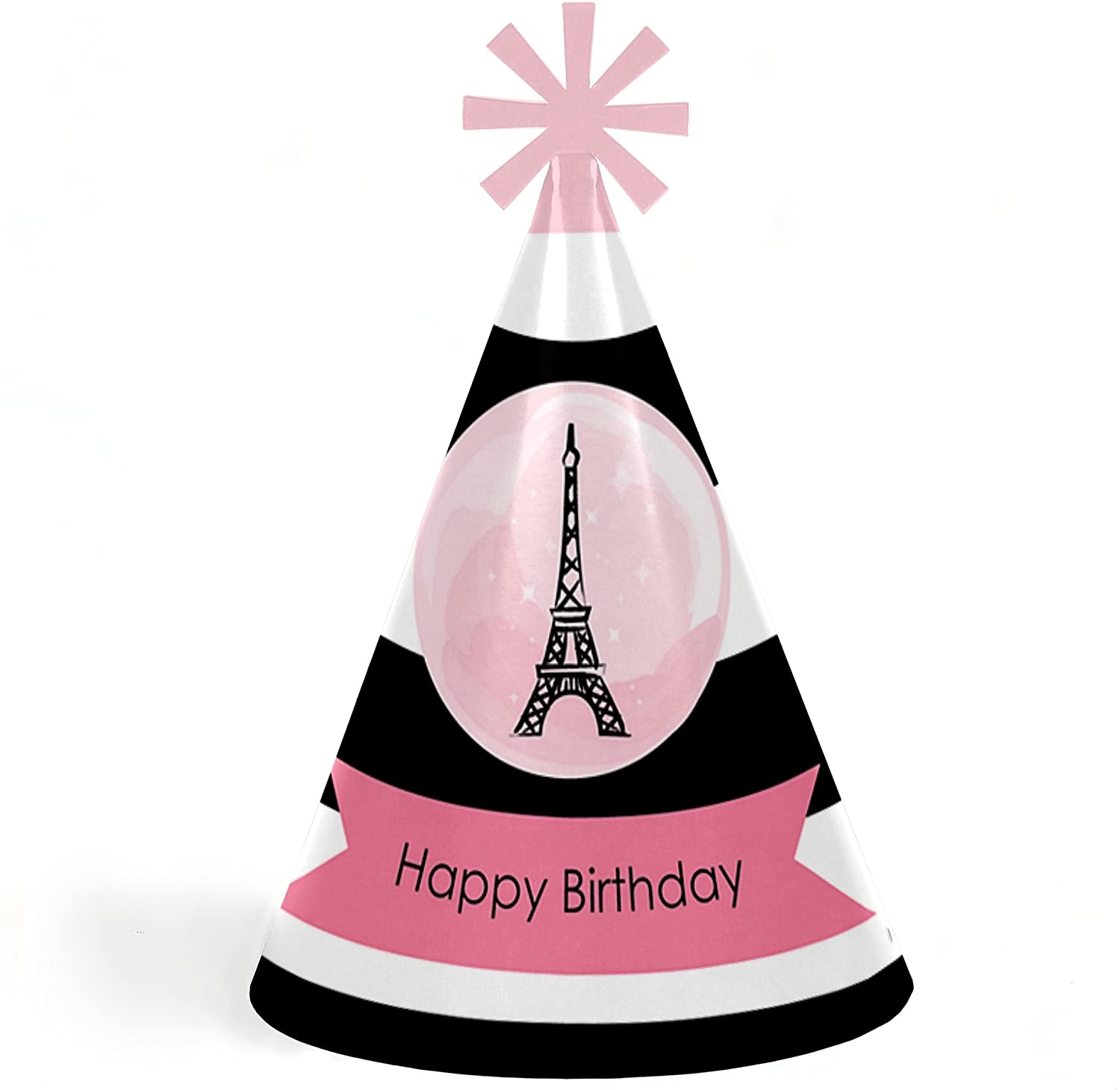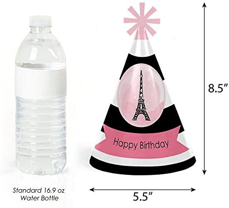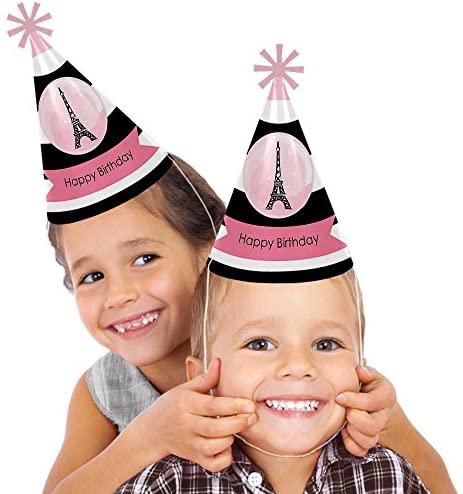Paris – Cone Paris Theme Happy Birthday Party Hats for Kids and Adults – Set of 8 (Standard Size)