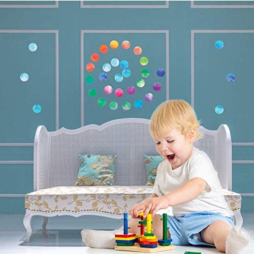 BEAUTIFUL COLORFUL CIRCLES :54 Pieces Multi Color Polka Dots Wall sticker Color circle wall Decal Children room Removable Decorative stickers EASY PEEL & APPLY WELL :Just peel and stick these vinyl decals on any clean and smooth surface to quickly add a unique style to your nursery, living room, bathroom, bedroom or anywhere else you want a pop of color EASY REMOVABLE & SAFE : If you dont like the initial placement,you could easily remove the polka dot decals with little effort and change another places no messy residue,making it perfect for that person who loves to change styles with the seasons LONG LASTING & GOOD ADHESIVENESS :regular manufacturers produced, quality assurance.The effect is perfect as hand-painted picture. Indoor wall tiling non-human causes or light environment can be guaranteed five years without fading does not fall off 100% GUARANTEED with GOOD CUSTOMER SERVICE: For Whatever Reason, You Dont Love Our polka dots decals, Just Return It, And Well Refund Every Penny .You can add to car now