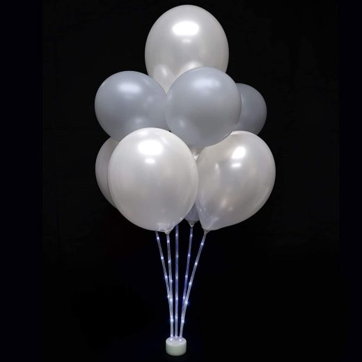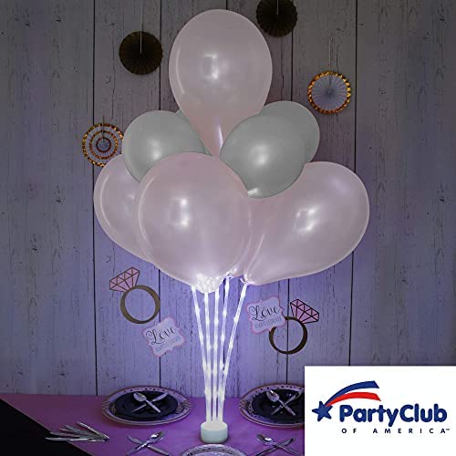 [Perfect Party Decoration] – The AIR-FILLED LED Balloon Centerpiece Kit by Party Club of America adds a festive yet classy touch to any special event you may be planning. Whether youre looking to celebrate a wedding, a milestone birthday, or a gender reveal, our LED Balloon Centerpiece Kit comes with everything you need to create a beautiful two, or three-tiered illuminated balloon centerpiece. [Plug-N-Play] – The AIR-FILLED LED Balloon Centerpiece Kit by Party Club of America is one of the few balloon centerpiece kits that includes pre-strung LED light sticks. Our plug-n-play technology eliminates the task of trying to successfully install LED lights into the balloon sticks. This is typically where most consumers struggle, they either give up and use the centerpiece without the LED lights or return the product to the manufacturer. [Reusable] – To match the decor theme, you can choose a theme set that is already matched.If you already have the balloon center kit, you can also match the desired shape or color of the balloon, just change the balloon, you can get different styles of balloon decoration. [Easy And Fast To Assemble] – The AIR-FILLED LED Balloon Centerpiece Kit comes with everything you need to create a beautiful lighted centerpiece, including easy to follow step-by-step assembly instructions. Estimated assembly time is 9 minutes. You can get a balloon decoration with LED lights up to 40 inches high. [Best Bang For Your Buck] – 1 × Base with Battery, 10×Balloon Cups, 5 × 17in Pre-Strung LED Light Sticks, 5 × Balloon clips, 2 × 6in Extensions with Connector, 1 × Mini Balloon Pump, 12 × Premium Quality Latex Balloons. The kit comes with 12 latex balloons, but we recommend replacing the balloons after each use to ensure the beauty of the lighted centerpiece isnt diminished.